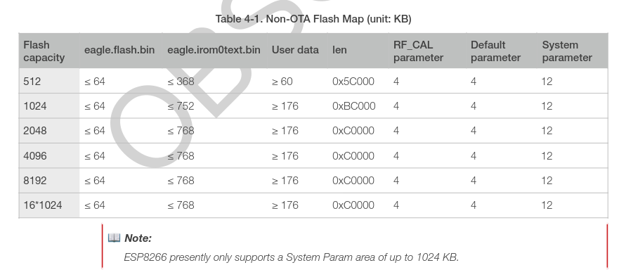 Consider the 1 MiB flash of the ESP-01, with a size of 0x100000 bytes (1024 KiB).